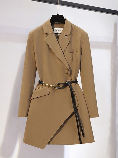 Belt Decoration Asymmetric Slim Jacket Blazer Casual Flared Pants Two-piece Elegant Women Pants Suit Office Manager Outfits