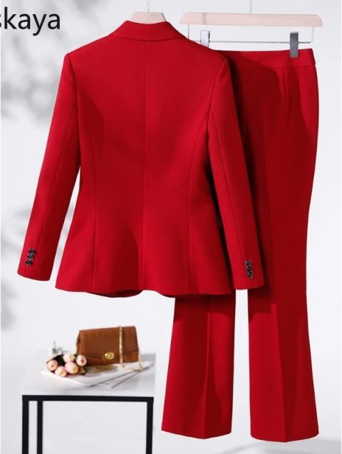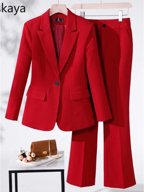 Business Work Wear 2 Piece Set Purple Blue Red Black Long Sleeve Blazer And Trouser Women Pant Suit Formal
