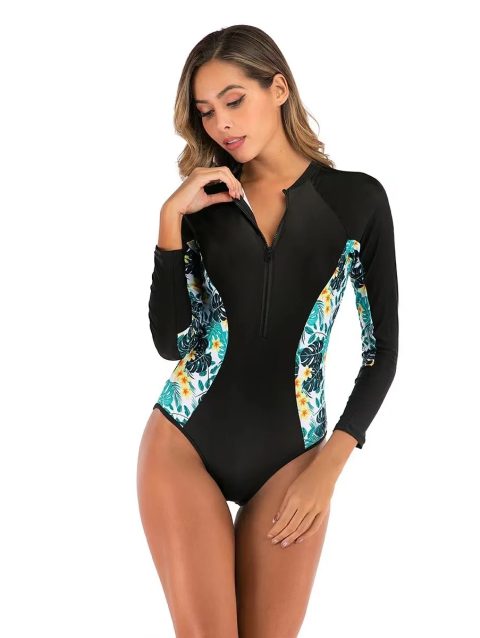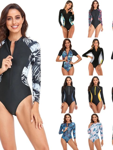 New Long Sleeve Printed One Piece Swimsuit Women Surfing Suit Wetsuit Fashion Bathing Swimming Suits Zipper Swimwear Woman