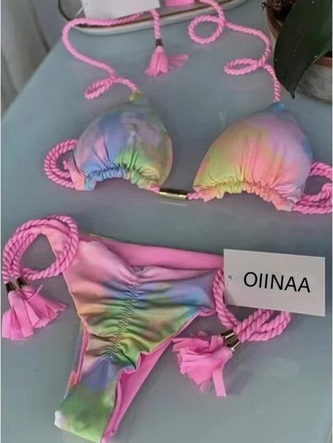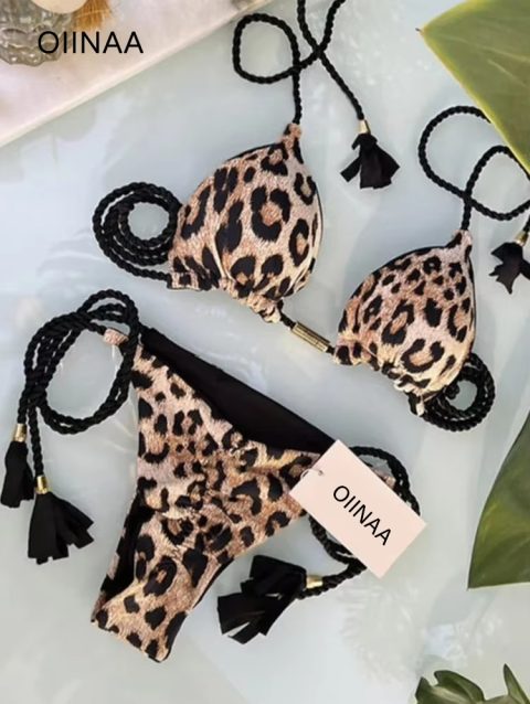 OIINAA Swimwear Women Sexy Zebra Striped Bathing Suit Leopard Printed Bikini Set Tie Dye Two-piece Drawstring Beachwear Biquinis