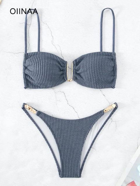 OIINAA Swimwear Women Solid Sexy Bikinis Set Drawstring Beachwear Summer Two-pieces Swimsuit Female Thong Bather Bathing Suit