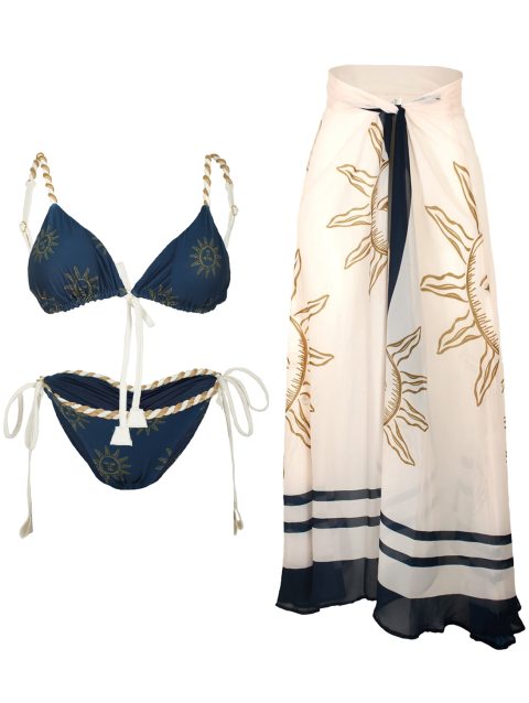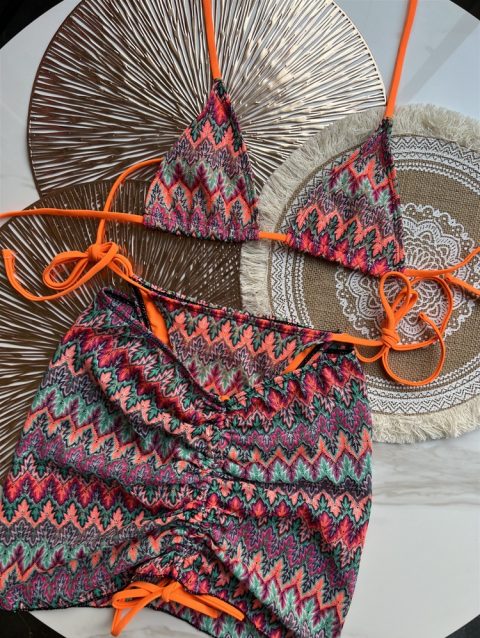 Women Swimsuit Colored Maple Leaves Knitted Bikini Skirt Three-Piece Set Split Swimsuit Bikini
