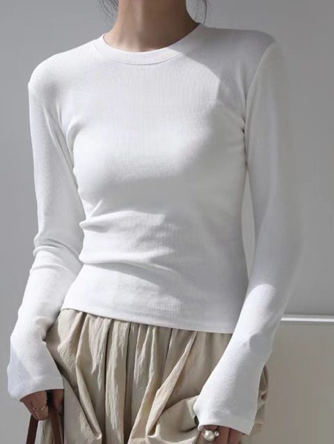 Cotton O Neck Long Sleeve Shirt Women Sexy Cropped Tops 2025 Autumn Black Casual Skinny Slim Basic Woman T Shirts White Clothing