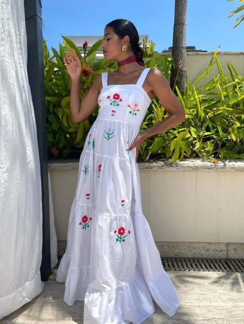 2025 Spring Women Dress Long Print Square Collar Sleeveless Loose Slip Dresses Female Elegant Casual Trendy Beach Ladies Clothes