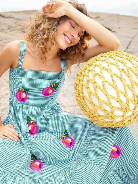 2024 Summer Elegant Women’s Wear Collage Plaid Suspender Elastic Large hem Dress for Women