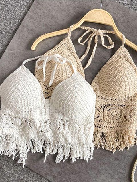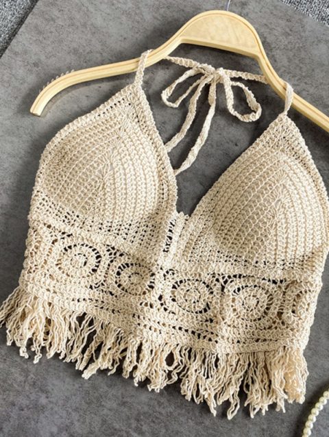 Sexy Boho Beach Holiday Camisole Halter Women Crochet Knit Swimsuit Bra Backless Vest Hollow Tassel Tank Top Women’s Crop Tops