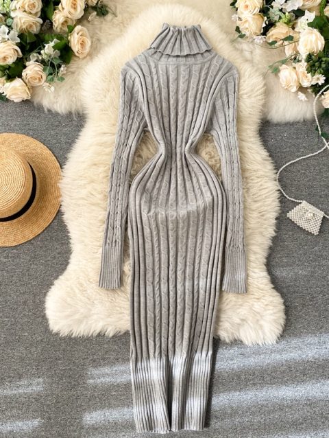 Talenza Women’s Knitted Dress Solid High Waisted Long Sleeve Sweater Bottoming Dress Fall Office Lady Women A-Line Dress Vestido