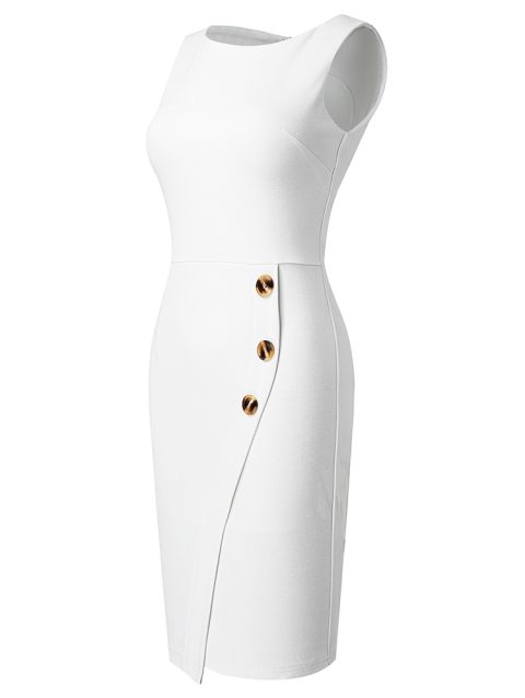 Nice-forever Summer Women Elegant Round Neck Plain Work Dresses Business Office Vintage Pencil Dress B705