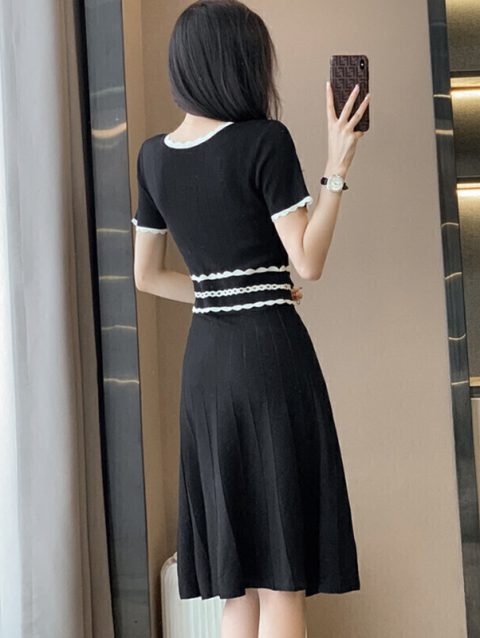 New Summer Women’s Short Sleeve Dress Elegant Fashion Casual Black A-line Skirt