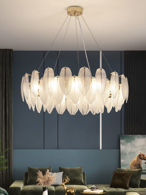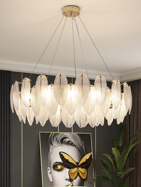 Modern Luxury Pendant Lights Feather Glass Gold E14 Metal for Living Room Bedroom Villa Chandelier Home Decor Lighting Fixture