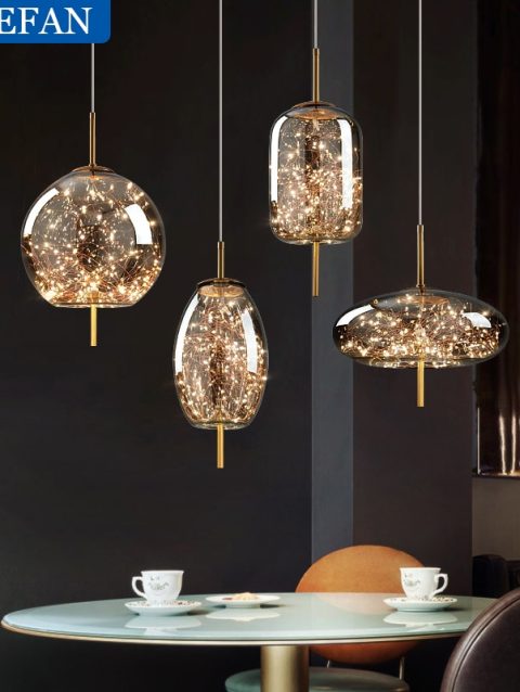 Modern Luxury Style Gold LED Pendant Lamp For Bedroom Living Dining Room Bathroom Bedside Art Glass Decoration Chandelier Light