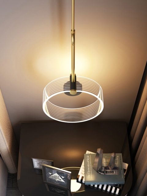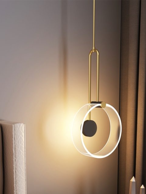 Nordic style minimalist LED pendant lights acrylic ring modern hanging lamp bedside living room background wall bedroom lighting