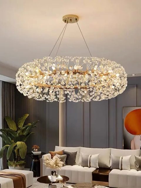 Golden crystal chandelier living room bedroom hall loft indoor round light luxury luxury sunflower chandelier