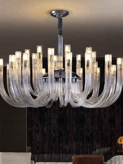 Hotel Living Room Hanging Led Chandelier Hotel Restaurant Large Led Chandelier Modern Pendant Light Glass Lights Luxury Lobby