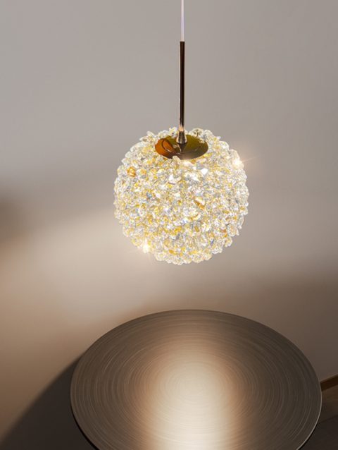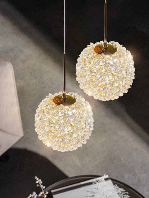 Luxury Round Ball Pendant Lamp Bedhead Warm Pendant Light Romantic Crystal Hanging Lamp for Dining Room Long Line Decor Fixture