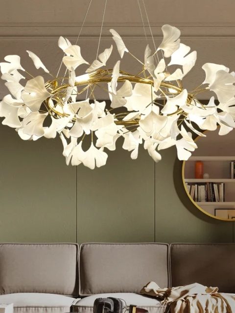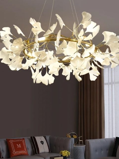 Luxury Modern Design Crystal Chandelier Novelty Ginkgo Leaf Living Room Lights Dining Room Pendant Bedroom Hanging Ceiling Lamps