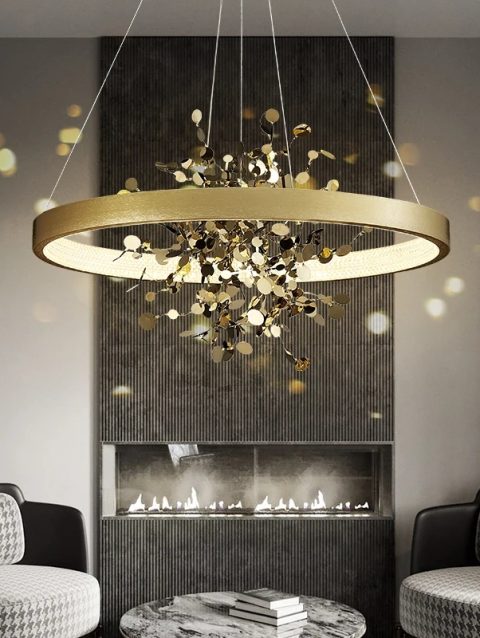 Luxury Copper Living Room Chandelier Modern Minimalist Creative Gold Pendant Lamps for Restaurant Villa