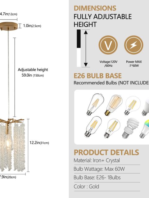 Luxury 3-Pack Crystal Pendant Lights, Elegant Golden/Chrome Finish Chandelier with Waterfall Bead Design (No Bulbs)