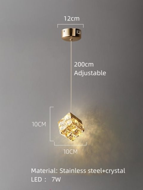Modern Clear Crystal Cube Pendant Light Gold Chrome Stainless Steel Bedroom Bedside Dining Room Hanging Lamp