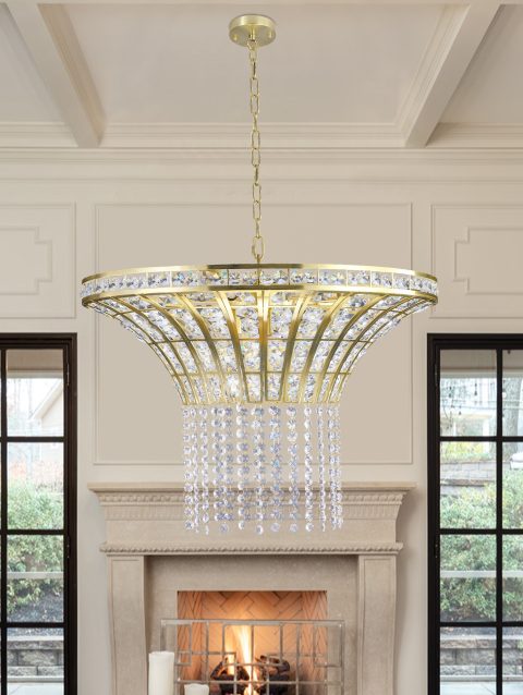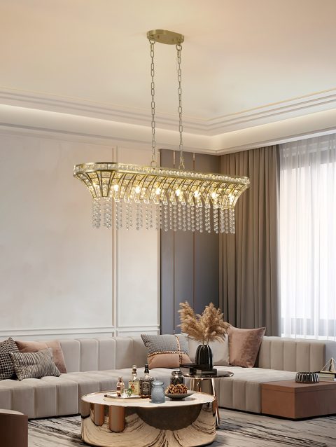 Modern Crystal Chandelier -Gold Oval & Round Pendant -8*G9 Base-Lighting Fixture With Adjustable Height- Luxurious Ceiling Light