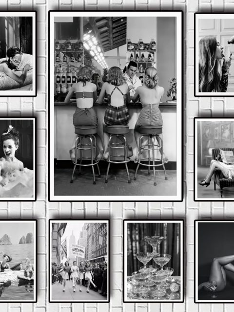 Sexy lady poster retro black and white bikini nude drinking women canvas printing wall art decoration paintings Home Room Decor