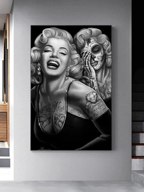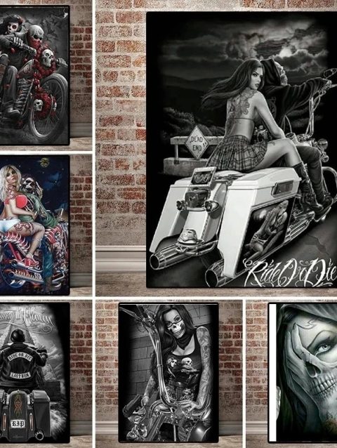 Tattoo Rider Black and White Graffiti Canvas Printing Girl Motorcycle Mexican Chicano Canvas Painting Art Decoration Aesthetics