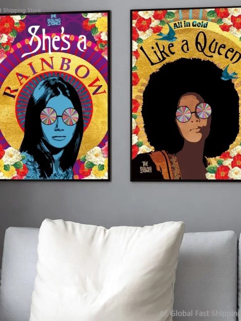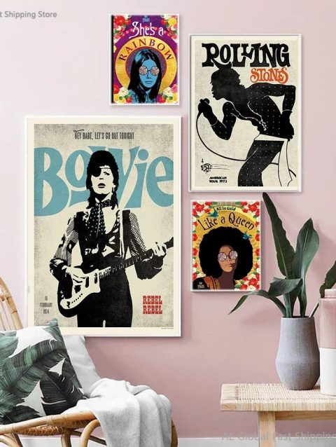 Vintage Rolling-Stones Rock Music Star Poster Printing Canvas Painting Bedroom Study Studio Living Room Wall Art Decoration