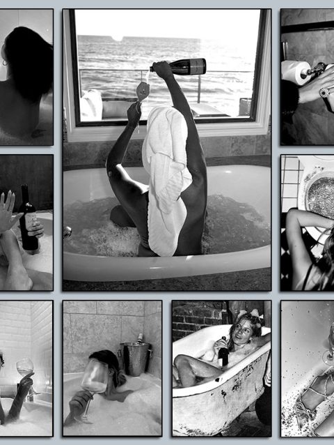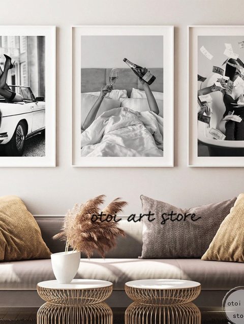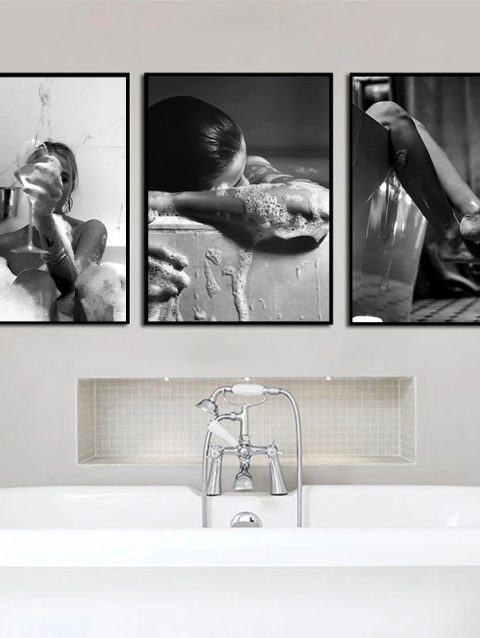 Woman Drinking Wine in Bathtub Print Bath Poster Take A Shower Black and White Canvas Painting Girl Bedroom Vintage Home Decor