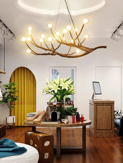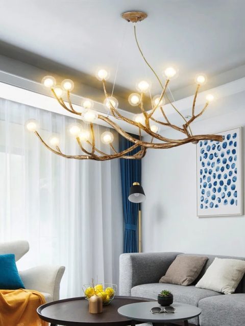 Vintage Pendant Lights Tree Branches Chandelier Resin Led Chandelier Lustre Hanging Lights Luxury Living Room Decoration