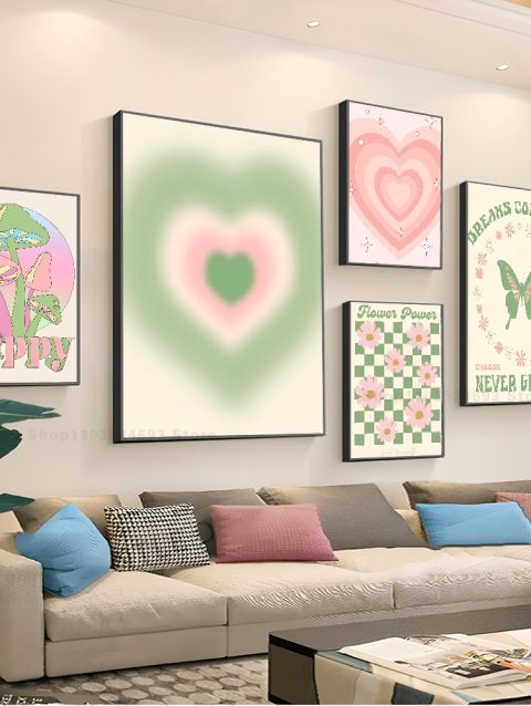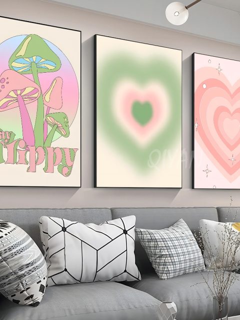 1pc Abstract Floral Heart Mushroom Butterfly Poster Stickers Art Wall Murals Decor Game Room Decor