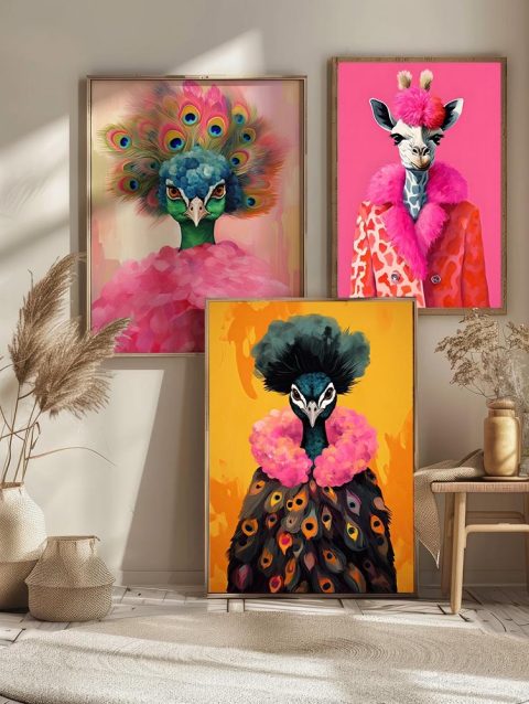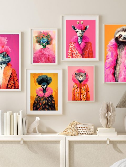 Colorful Animal Fashion Art Poster Prints Maximalist Wall Art Canvas Painting Portraits Cute Hipster Print Wall Art Home Decor