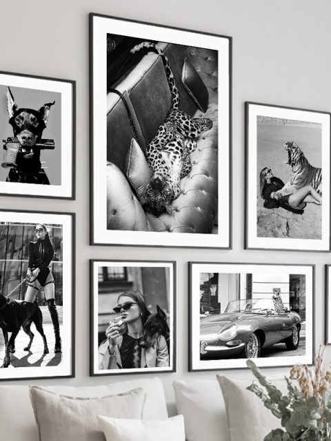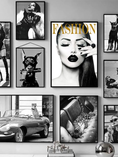 Black Doberman Tiger Leopard Fashion Girl Wall Art Canvas Painting Nordic Posters and Prints Wall Pictures for Living Room Decor