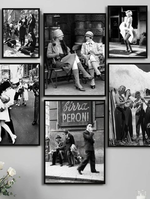 Classic Black and White Nuns Drinking Photography Poster Canvas Painting Vintage Paris Street Lover Kiss Wall Picture Home Decor