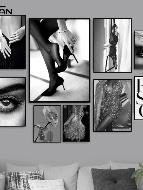 Caution Eye Sexy Lady Poster Black White Bra Canvas Art Fashion Wall Picture Party Ball Girl Painting Prints Bedroom Decor