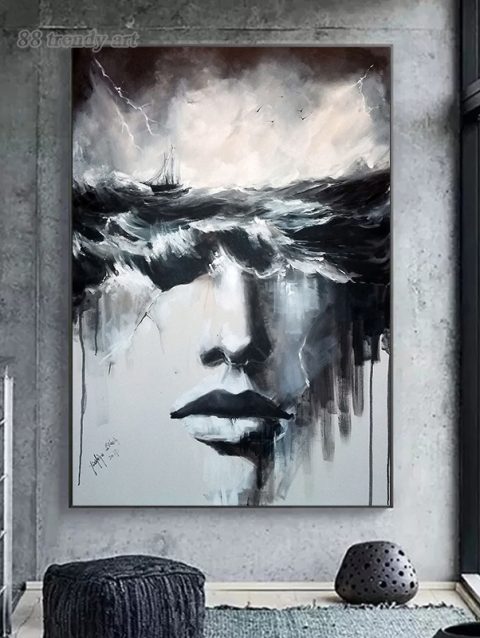 Canvas Print Art Painting Abstract Women Figure Ink Painting Canvas Posters Black and White Figure Wall Art Picture Home Decor