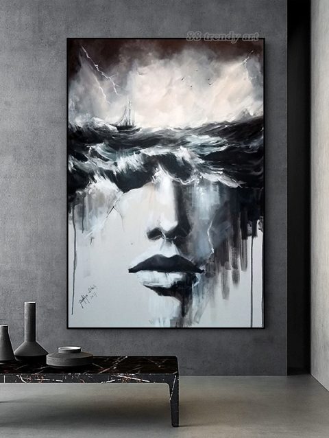 Character Portrait Aesthetic Wall Art Lana Del Rey Music Singer Black and White HD Oil on Canvas Posters and Prints Home Decor