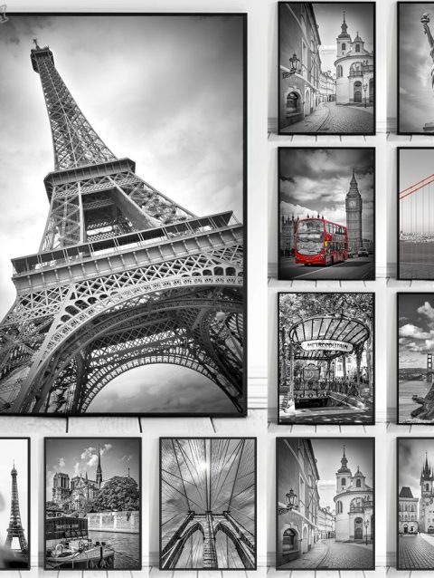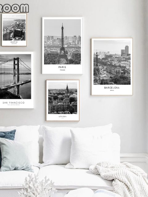 Black White Beautiful City New York London Paris Eiffel Tower Photography Art Posters Canvas Painting Fashion Home Decor Mural