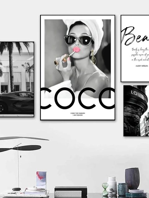 Fashion Perfume Women Super Car Poster Luxury Black White Paris Decorative Paintings Canvas Wall Art Pictures Living Room Decor