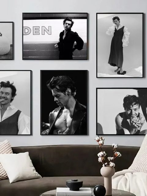 Famous Pop Singer Harris_Styles Black and White Vintage Posters Canvas Painting Prints Wall Art Picture for Bar Cafe Room Decor