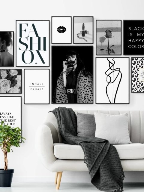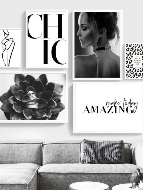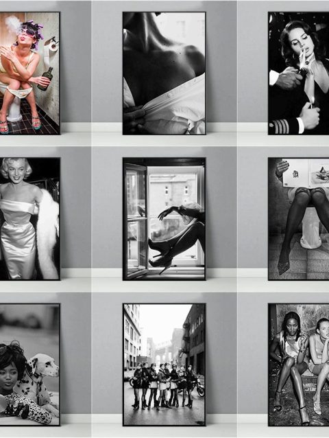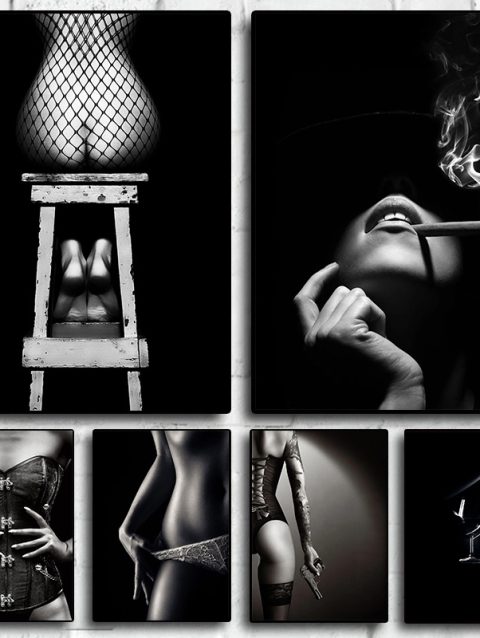 Fashion Black and White Sexy Woman HD Photography Poster Canvas Paintings Wall Art Pictures for Living Room Home Decor Frameless