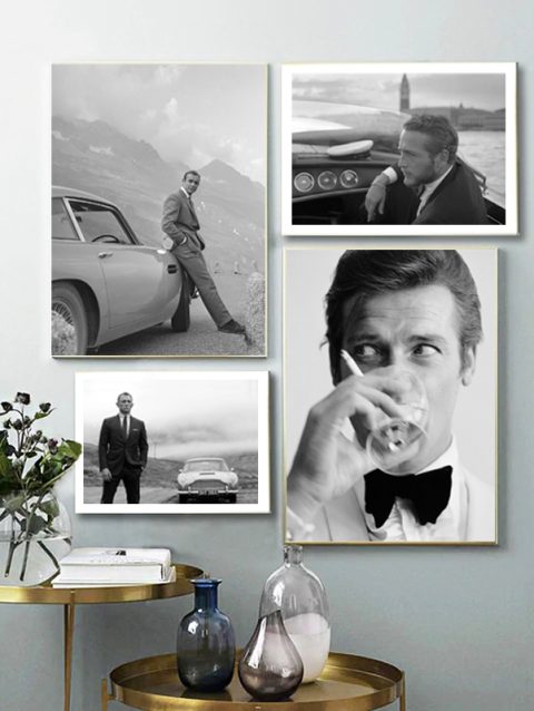 Gentleman Spy Movie 007 Poster Bond Cars Black and White Actor Prints Movie Canvas Painting Wall Art Picture Living Room Decor