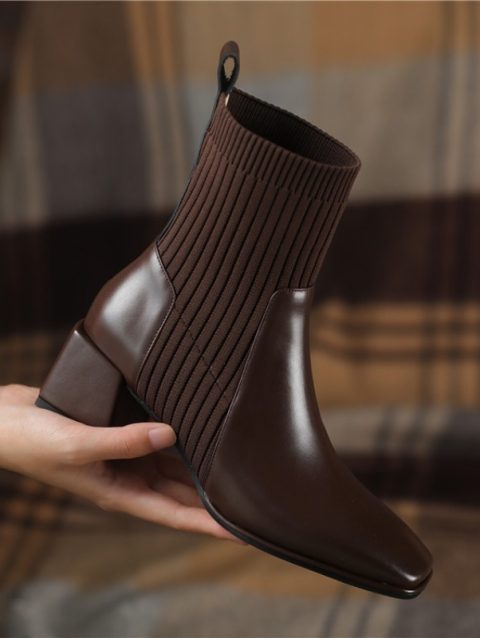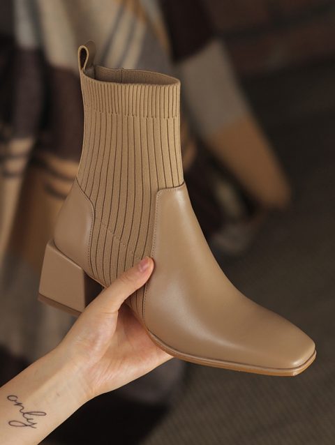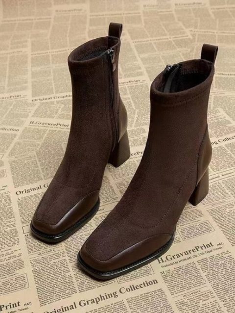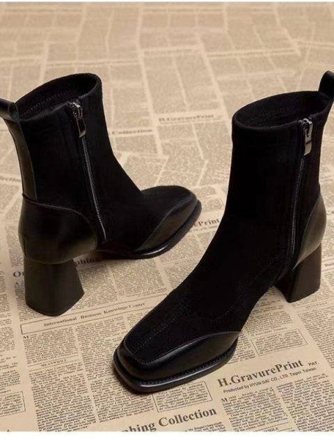 2023 Spring Autumn Square Headed Solid Color Fashion Side Zipper Waterproof Platform Simple External Wear Women’s Fashion Boots