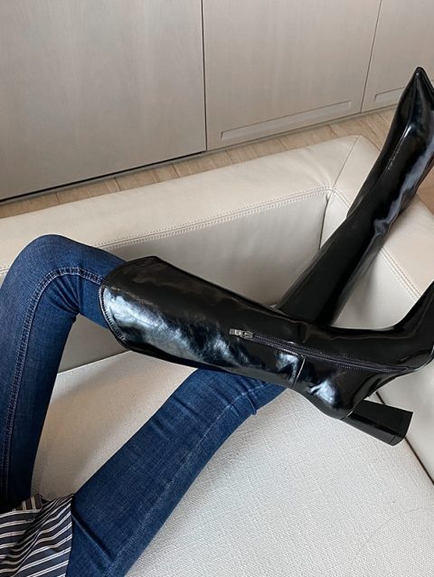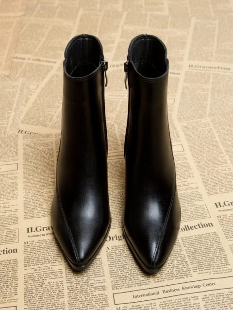 2024 Spring and Autumn New British Style Thin and Thin Women’s Boots Pointed Toe Thin Side Zipper Black Nude Boots Women