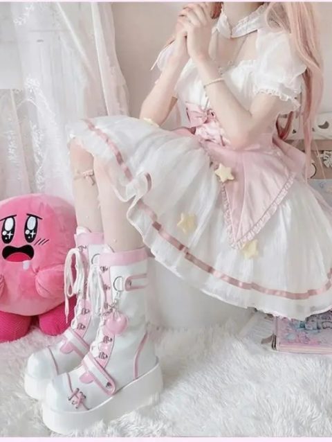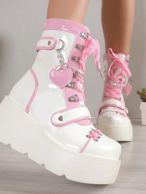 Adorable Heart-shaped Women’s Short Boots Platform Sole Ankle Tie Cute Motorcycle Boot Trendy Winter Footwear