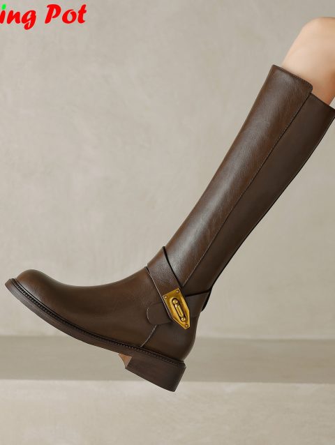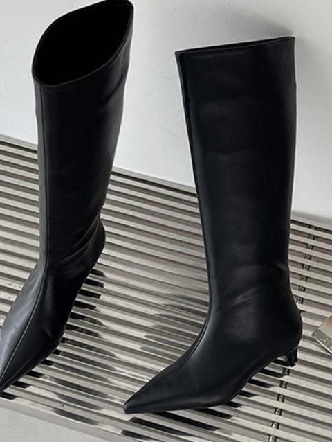 Fashion Women Knee High Boots Slip On Shoes Low Heels Pointe Toe Ladies Shoes Female Footwear Western Modern Long Boots