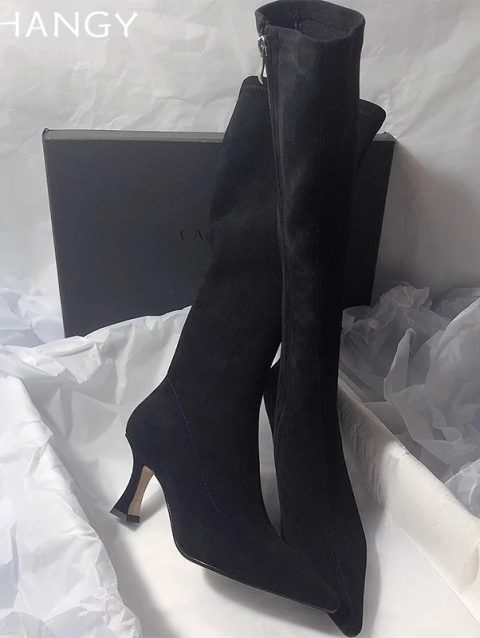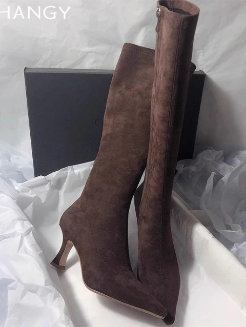 High Heels Women High Boots Suede Pointed Toe Elegant Knee High Shoes Woman Trend Fashion Sexy Pumps Party Chelsea Boots Mujer