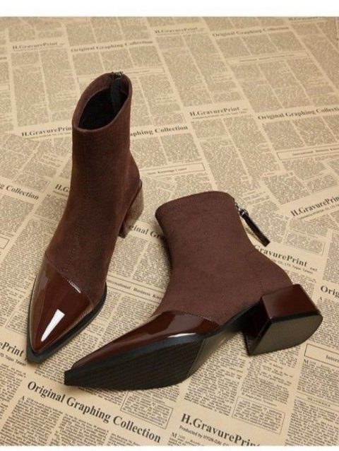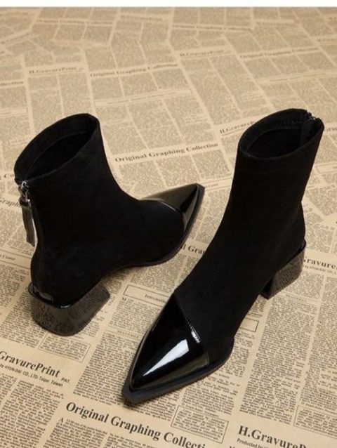 Ladies Shoes 2024 High Quality Modern Women’s Boots Concise Ankle Boots Women Sewing Pointed Toe Med Heel Back Zip Shoes Women