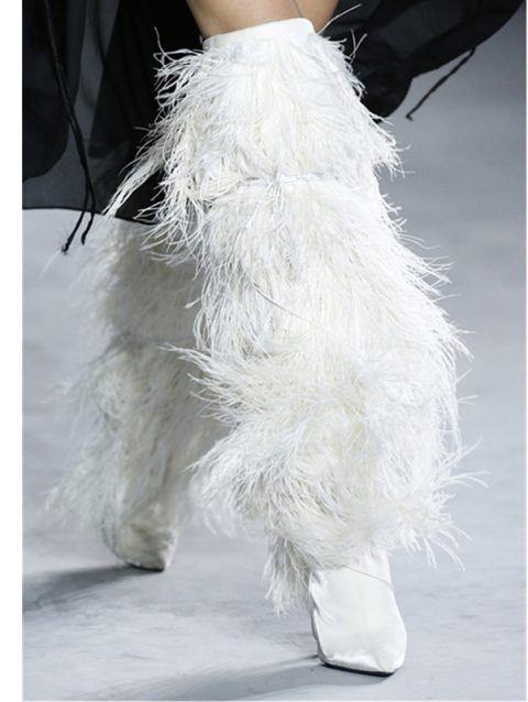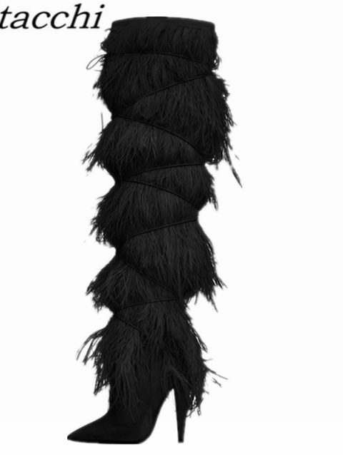 Feather Women’s High Boots Suede Cross-tied Pointed Toe Party High Heel Shoes Sexy Ostrich Feather Women’s Over The Knee Boots