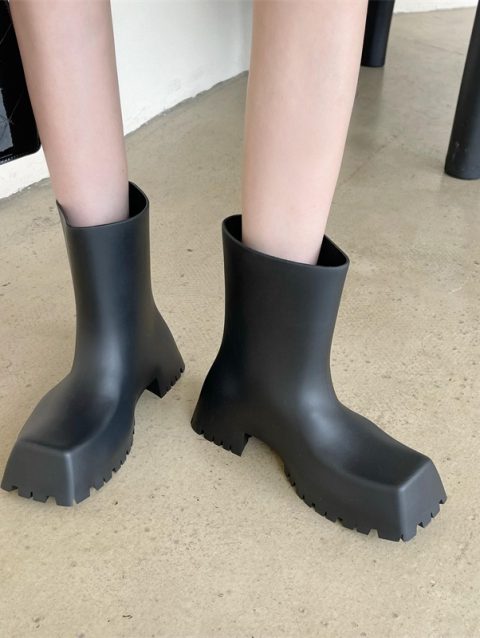Luxury Women Boots Fashion Designer Boots Waterproof Non-slip Short Boot Square Toe Soft Leather Comfy Women Platform Rain Boots
