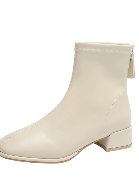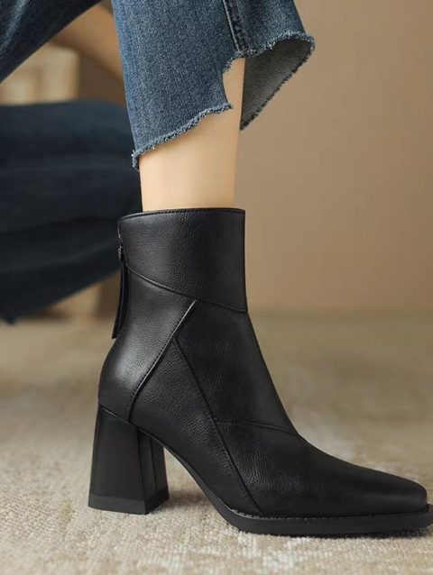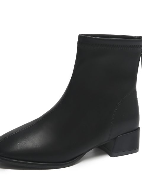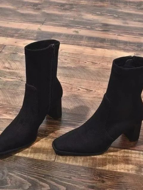 Ladies Shoes 2024 Hot Sale Side Zipper Women’s Boots Winter Square Toe Solid Short Barrel Chunky Heel Fashion Boots Zapatos